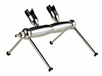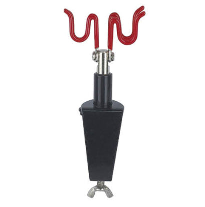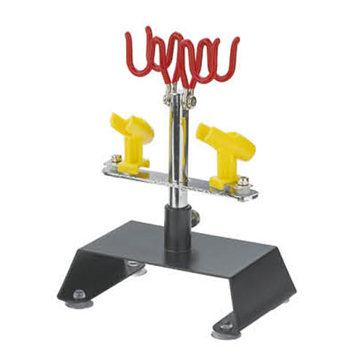 Sturdy clamp-style airbrush holder that holds two airbrushes. Can be clamped to table-top, workbench, easel etc.