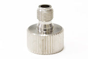 Adapter, 1/4"M to 3/8"F Adapter with a 1/4" threaded male end and a 3/8" threaded female end.