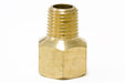 Adapter with a 1/4" threaded male end and a 3/8" threaded female end.
