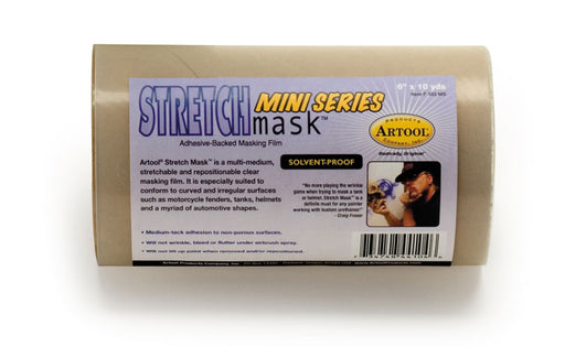Stretchmask Stretchmask is a multi-medium, stretchable and flexible repositionable masking film. It is especially suited to conform to curved and irregular surfaces such as motorcycle tanks, helmets and automotive shapes for painting. It is clear, thin film that cuts very easily with any brand of art knife or single-edged razor and can be effortlessly manipulated and repositioned with your artwork always in view.