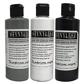 For the perfect prime every time use Badger Air-Brush Co.'s new Stynylrez ready to use primer. Stynylrez water based acrylic polyurethane is an eas...