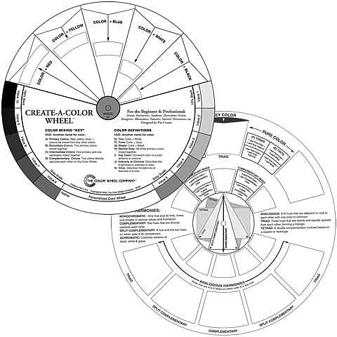 A tool for designers in a variety of artistic mediums to help create color combinations and to understand color relationships. This color wheel hel...