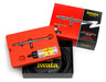 Iwata's spring-steel needle resists breakage and our needle packings are solvent resistant for longevity. We include an Iwata nozzle spanner that may be used to remove the nozzle for cleaning and Iwata Lube, which lubricates the needle and main lever mechanism. Set includes Iwata Airbrush Hose.