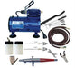 This is our most versatile airbrush system. The VL can be used for most any application and spray any type of paint or fluid and comes with all three head sizes. The D500SR is a quiet 1/8 HP compressor with regulator & moisture trap that delivers steady dry air and also has the auto shutoff feature. Also inlcuded is the AC-7 cleaning kit .