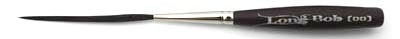 This brush offering, is a modification of the Bobbo Super Quad. We are using the same mixture of hair that is offered in the Bobbo, which is a black synthetic and blue squirrel blend, but with extended hair lengths of 1 ¾" to 2". We have had great success with the Bobbo brush, and have had requests for a longer hair length version. We offer this brush in four different sizes which are 000, 00, 1, and 2. With the mixture of hair that is used, this provides medium versatility for enamels as well as urethanes without compromising performance. The smaller sizes offer intricate design work capabilities coupled with very tight cornering. As you progress to the higher sizes the brush will allow you to do longer line work with thicker consistent line quality. These brushes will offer the individual a high quality striper, outliner, and scroller.