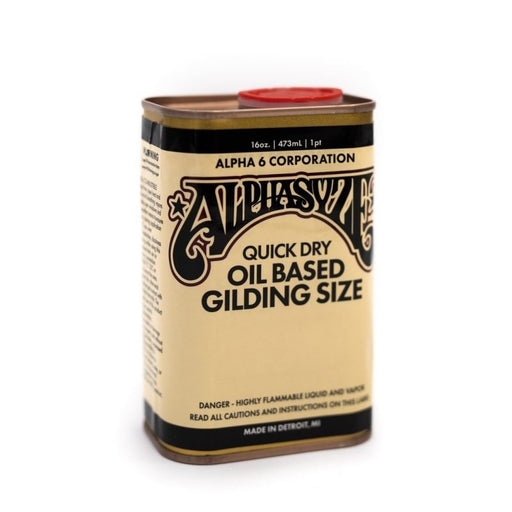 Alpha 6 QUICK DRY GILDING SIZE is an oil based clear size made for fast (1-3 hrs) leaf work. Can also be used for a top coat.