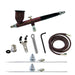 TG#2 Double Action Airbrush, .4oz cup, Cup Cover, Size 1 and 3 Heads, Fan Aircap, Hanger, 1/8BSP Adapter, (2) Wrenches, 6ft braided hose and manual.