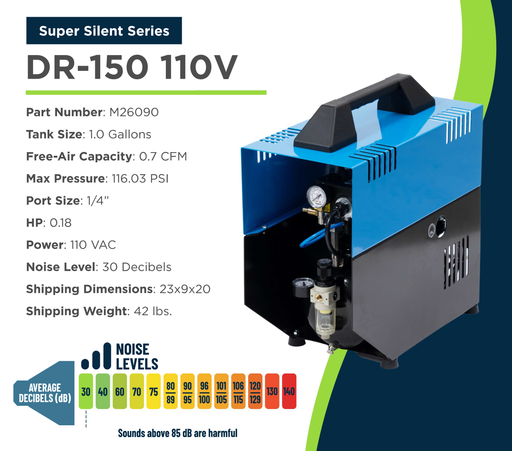 View full detailsElevate your air compressor game with the Super Silent DR 300 by Silentaire Technology. Enjoy silent operation, automatic function, and precise reg...
