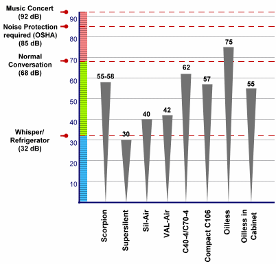 All SuperSilent compressors are virtually "noiseless" and are totally automatic. Most units include a tank and line pressure gauge, line pressure regulator, moisture trap / filter / gauge, safety-valve, air intake filter and a carrying handle. Most models also available in 220V.